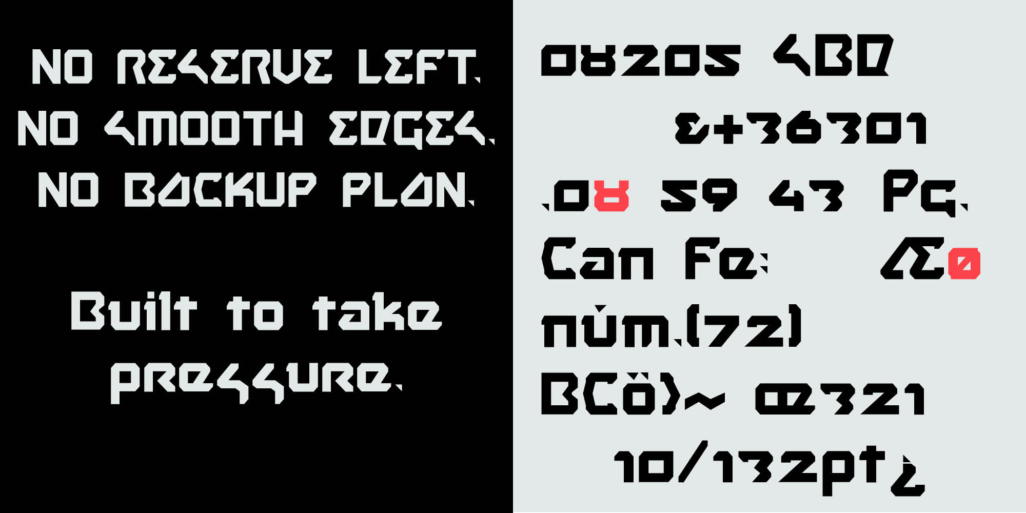 • Full uppercase alphabet, numerals, punctuation, and symbols
